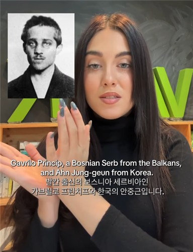 The video also introduces Korean independence activist Ahn Jung-geun, drawing a parallel between the two figures. Gavrilović explains that Ahn, like Princip, acted under imperial domination out of a strong sense of historical responsibility. She adds that Ahn is remembered not as someone driven by hostility toward a particular nation, but as a thinker who sought peace and coexistence in East Asia.